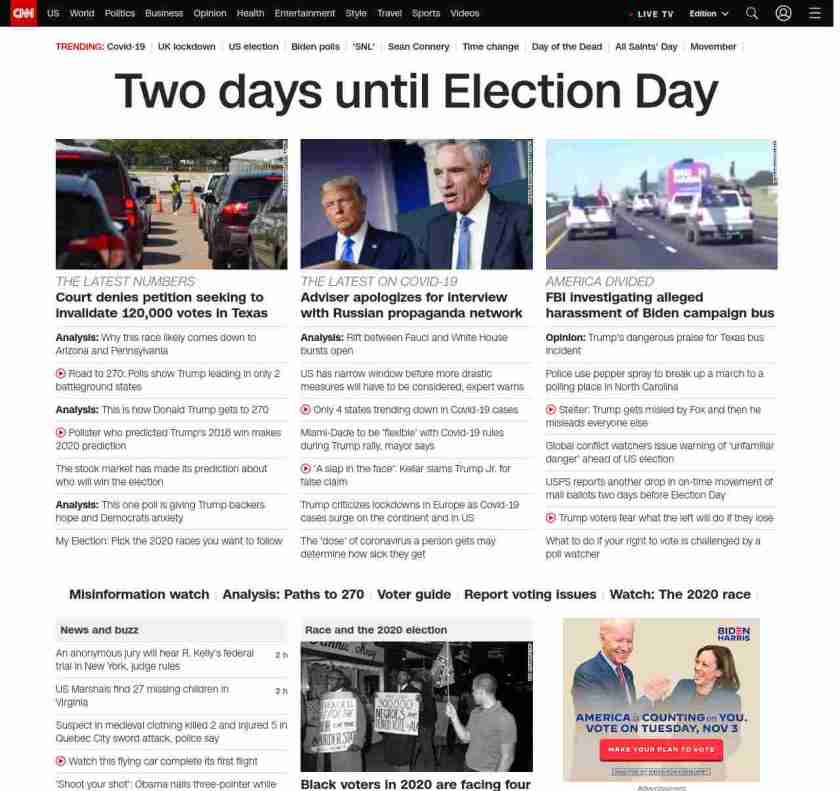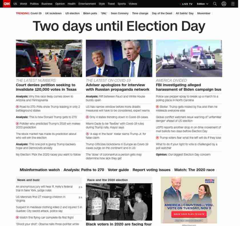 || banner-text–natural”> Two days until Election Day ||”},”chartbeat”:{“sections”:””},”branding_content_page”:”presidential-debate”,”branding_content_zone”:[“default”],”branding_content_container”:[“default”,”cnn-money-markets”,”space-and-science”,”cnn-heroes-hp”],”branding_content_card”:[“”]} , edition: “domestic” , sourceId: ”