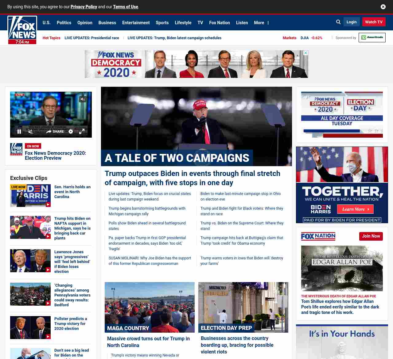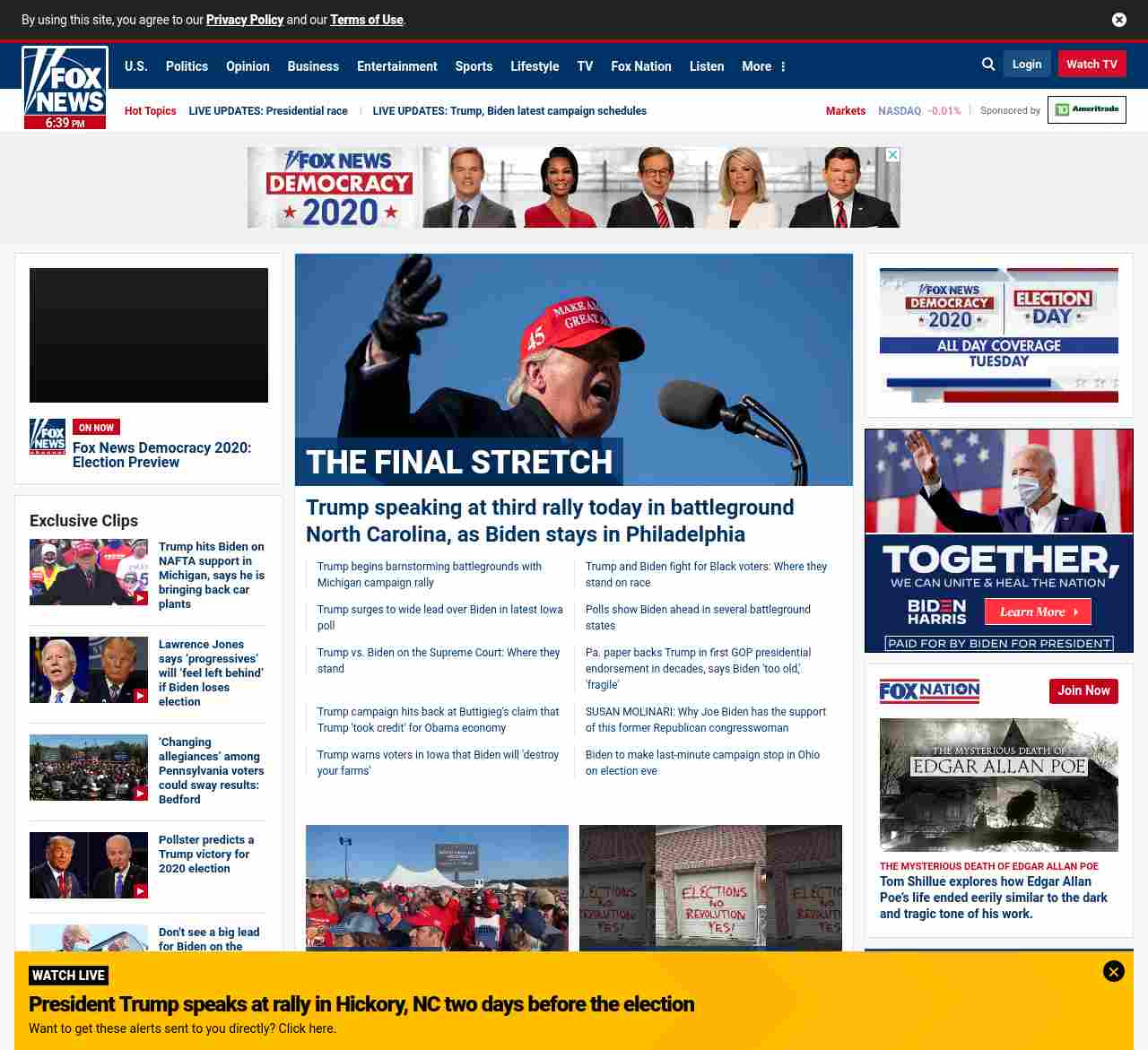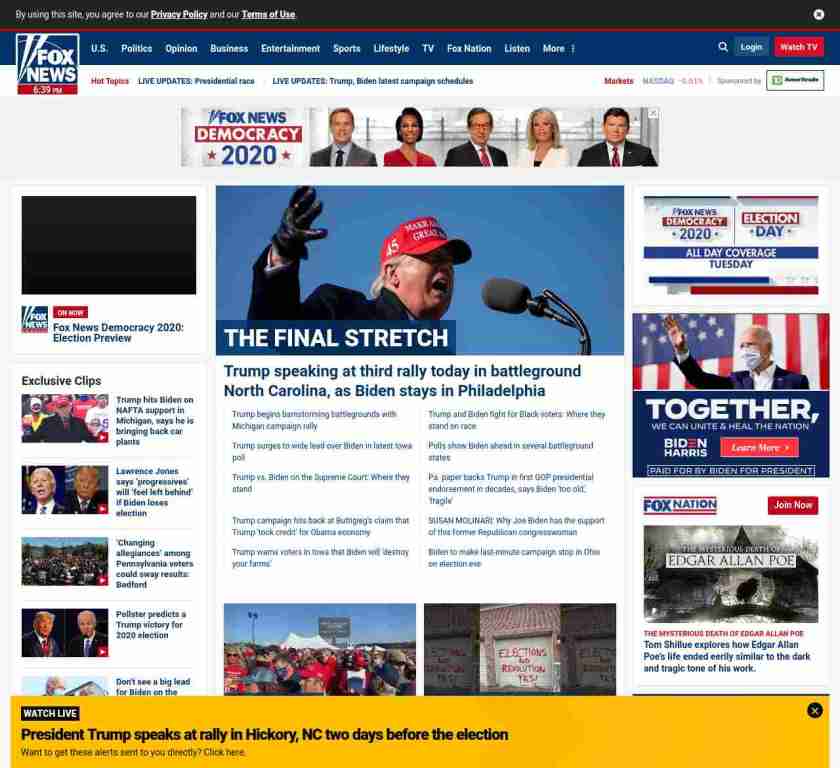 =”https://www.foxnews.com/politics/live-updates-trump-biden-focus-on-crucial-states-during-last-campaign-weekend“>Trump speaking at third rally today in battleground North Carolina, as Biden stays in Philadelphia
