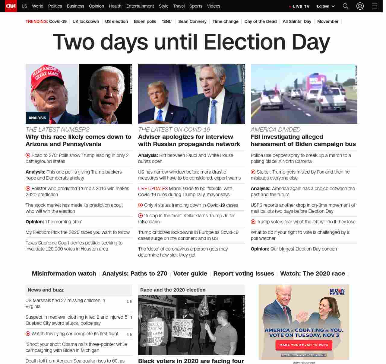 || banner-text–natural”> Two days until Election Day ||”},”chartbeat”:{“sections”:””},”branding_content_page”:”presidential-debate”,”branding_content_zone”:[“default”],”branding_content_container”:[“default”,”cnn-money-markets”,”space-and-science”,”cnn-heroes-hp”],”branding_content_card”:[“”]} , edition: “domestic” , sourceId: ”
