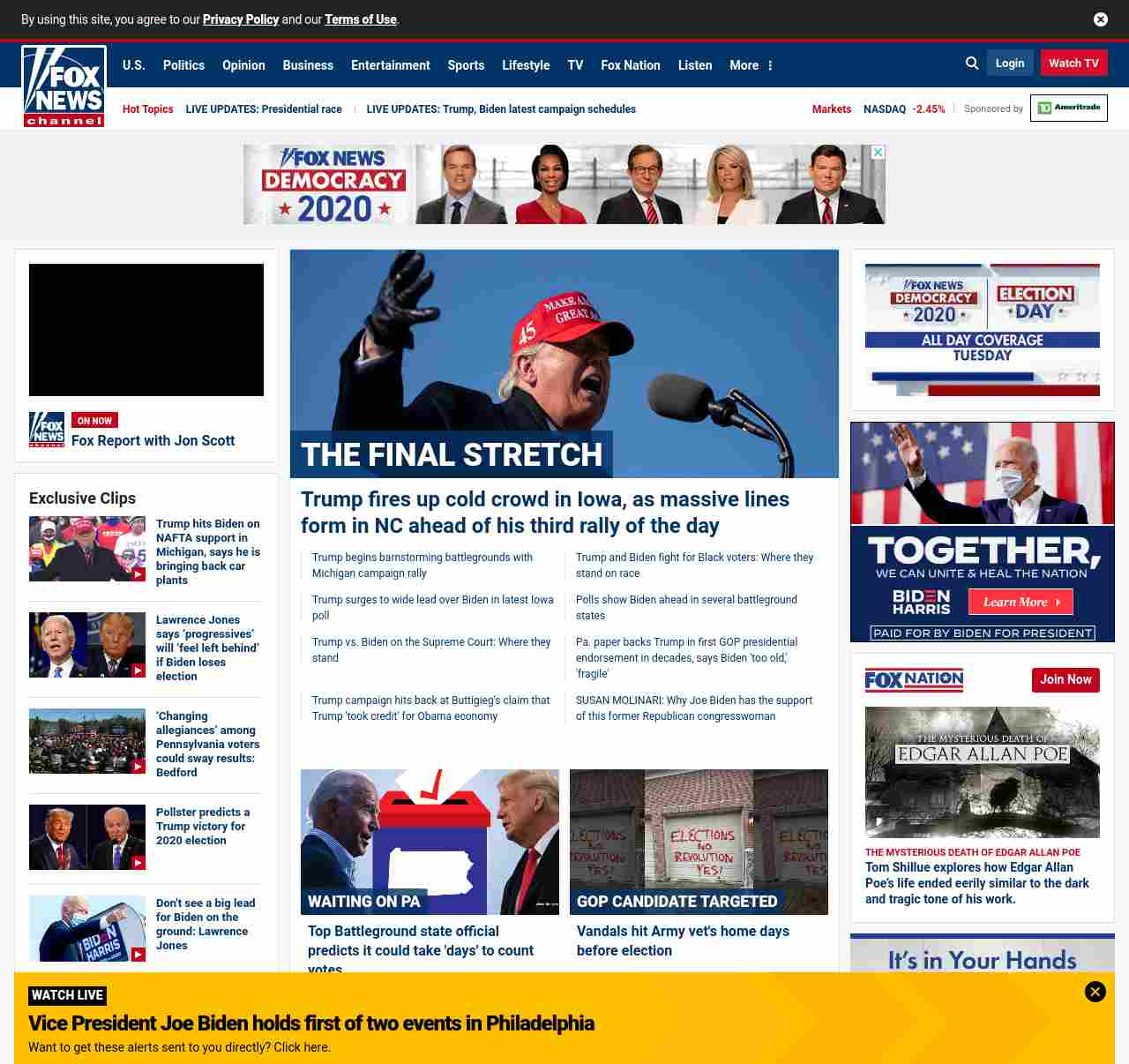 FN: [[THE FINAL STRETCH]] Trump fires up massive crowd at Iowa rally, as Biden hits POTUS at small Philadelphia event</a ((lubuntu at wor1))
