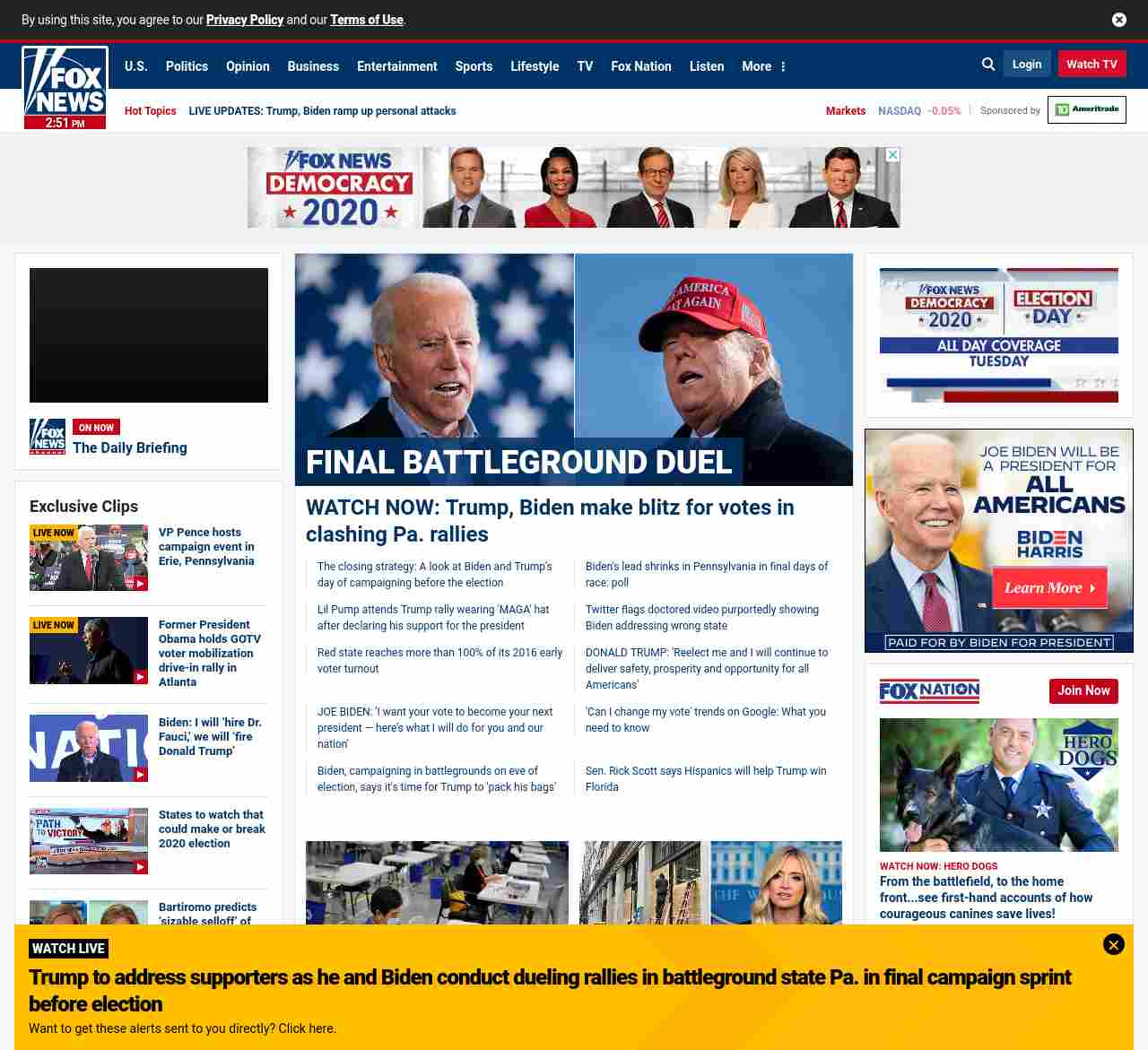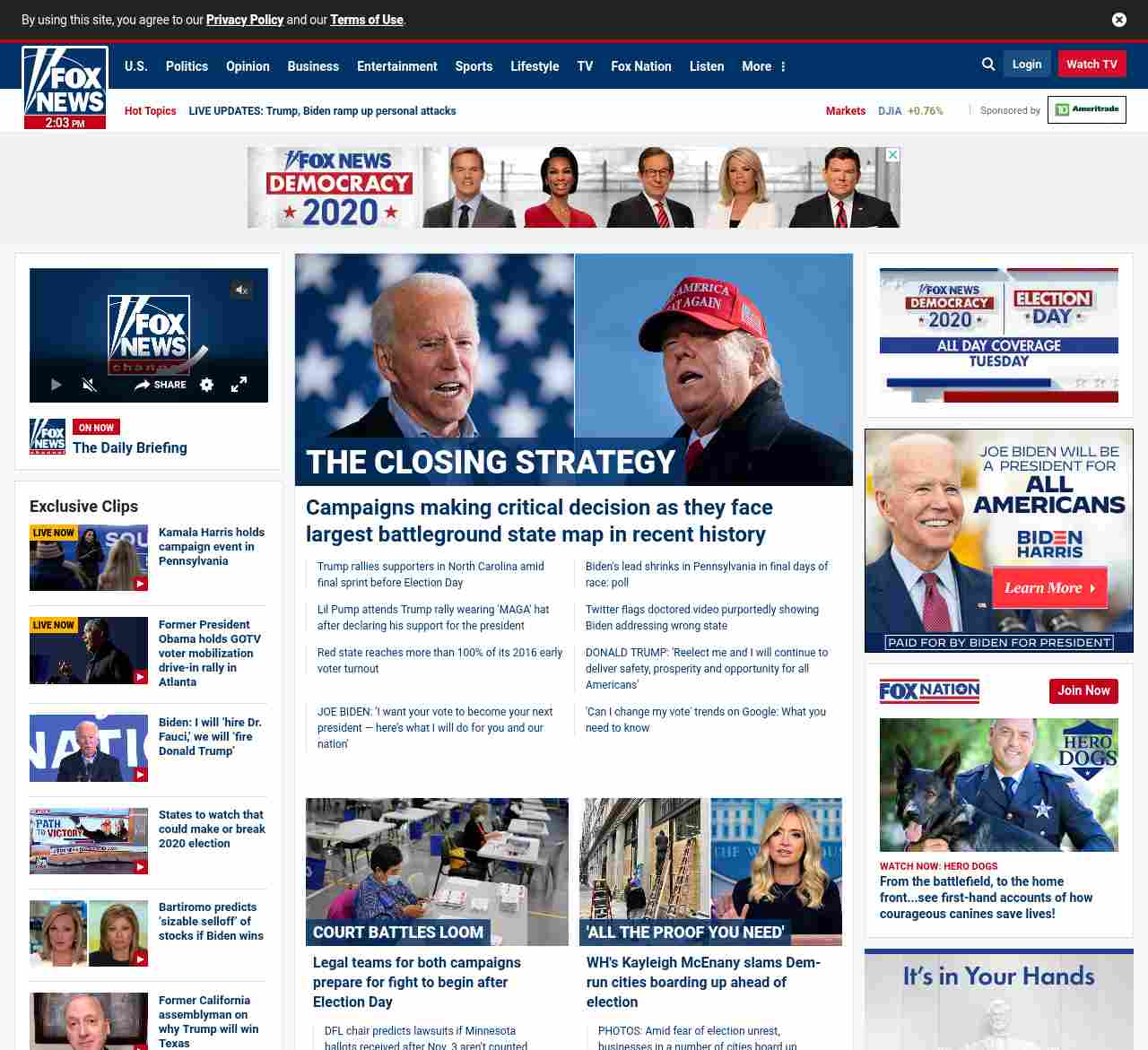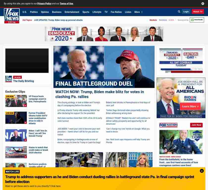 =”https://www.foxnews.com/politics/biden-trump-day-before-election“>Campaigns making critical decision as they face largest battleground state map in recent history