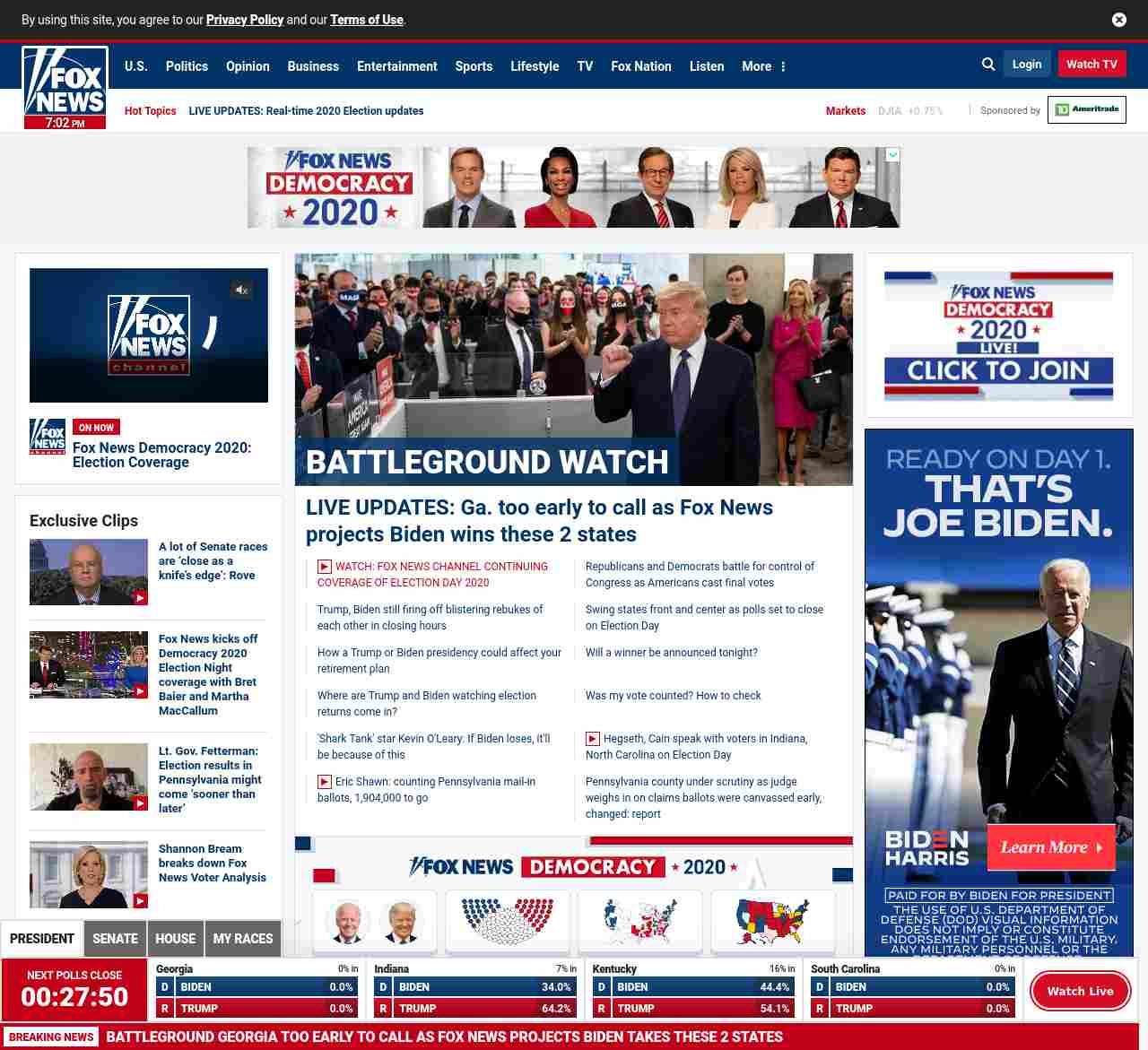 FN: [[BATTLEGROUND WATCH]] LIVE UPDATES: Ga. too early to call as Fox News projects Biden wins these 2 states</a ((lubuntu at wor1))