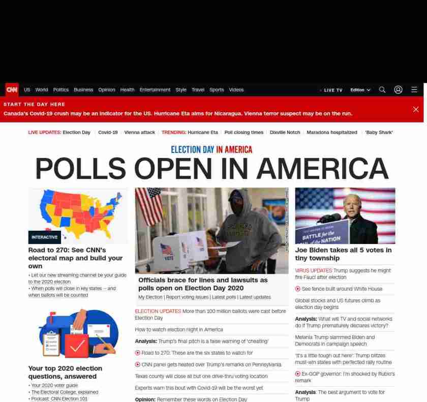 || banner-text–maximized banner-text-size–char-23-uc”> POLLS OPEN IN AMERICA ||”},”chartbeat”:{“sections”:””},”branding_content_page”:”presidential-debate”,”branding_content_zone”:[“default”],”branding_content_container”:[“default”,”cnn-money-markets”,”space-and-science”,”cnn-heroes-hp”],”branding_content_card”:[“”]} , edition: “domestic” , sourceId: ”