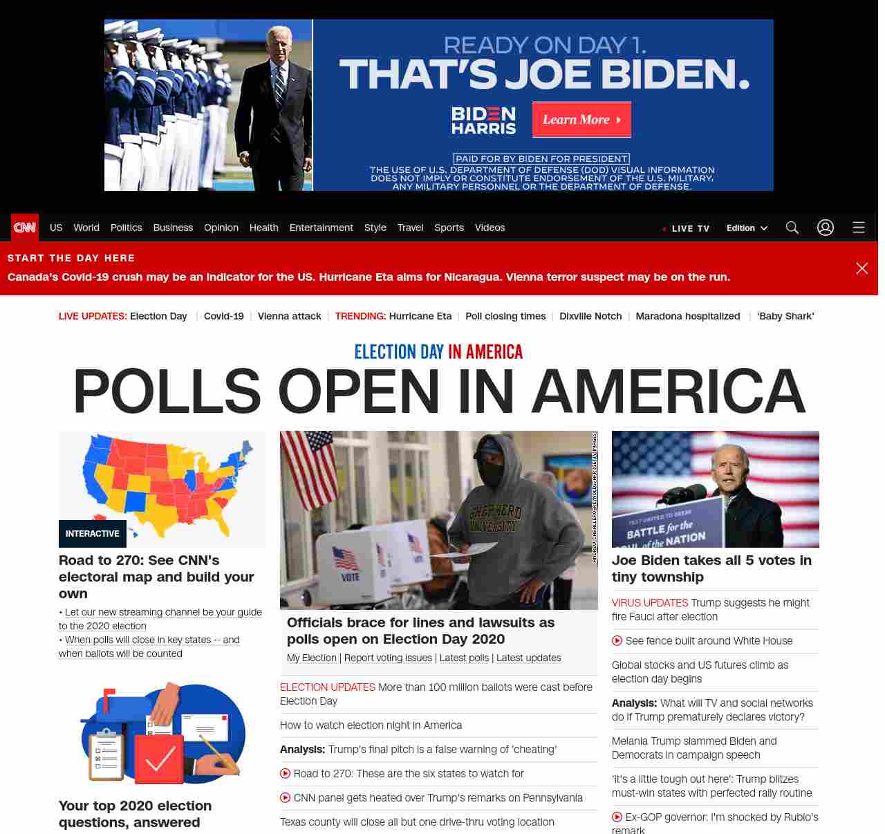 || banner-text–maximized banner-text-size–char-23-uc”> POLLS OPEN IN AMERICA ||”},”chartbeat”:{“sections”:””},”branding_content_page”:”presidential-debate”,”branding_content_zone”:[“default”],”branding_content_container”:[“default”,”cnn-money-markets”,”space-and-science”,”cnn-heroes-hp”],”branding_content_card”:[“”]} , edition: “domestic” , sourceId: ”