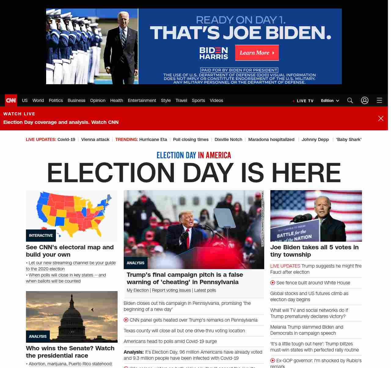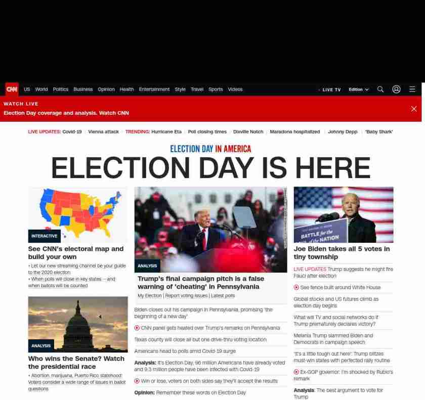 || banner-text–maximized banner-text-size–char-23-uc”> ELECTION DAY IS HERE ||”},”chartbeat”:{“sections”:””},”branding_content_page”:”presidential-debate”,”branding_content_zone”:[“default”],”branding_content_container”:[“default”,”cnn-money-markets”,”space-and-science”,”cnn-heroes-hp”],”branding_content_card”:[“”]} , edition: “domestic” , sourceId: ”