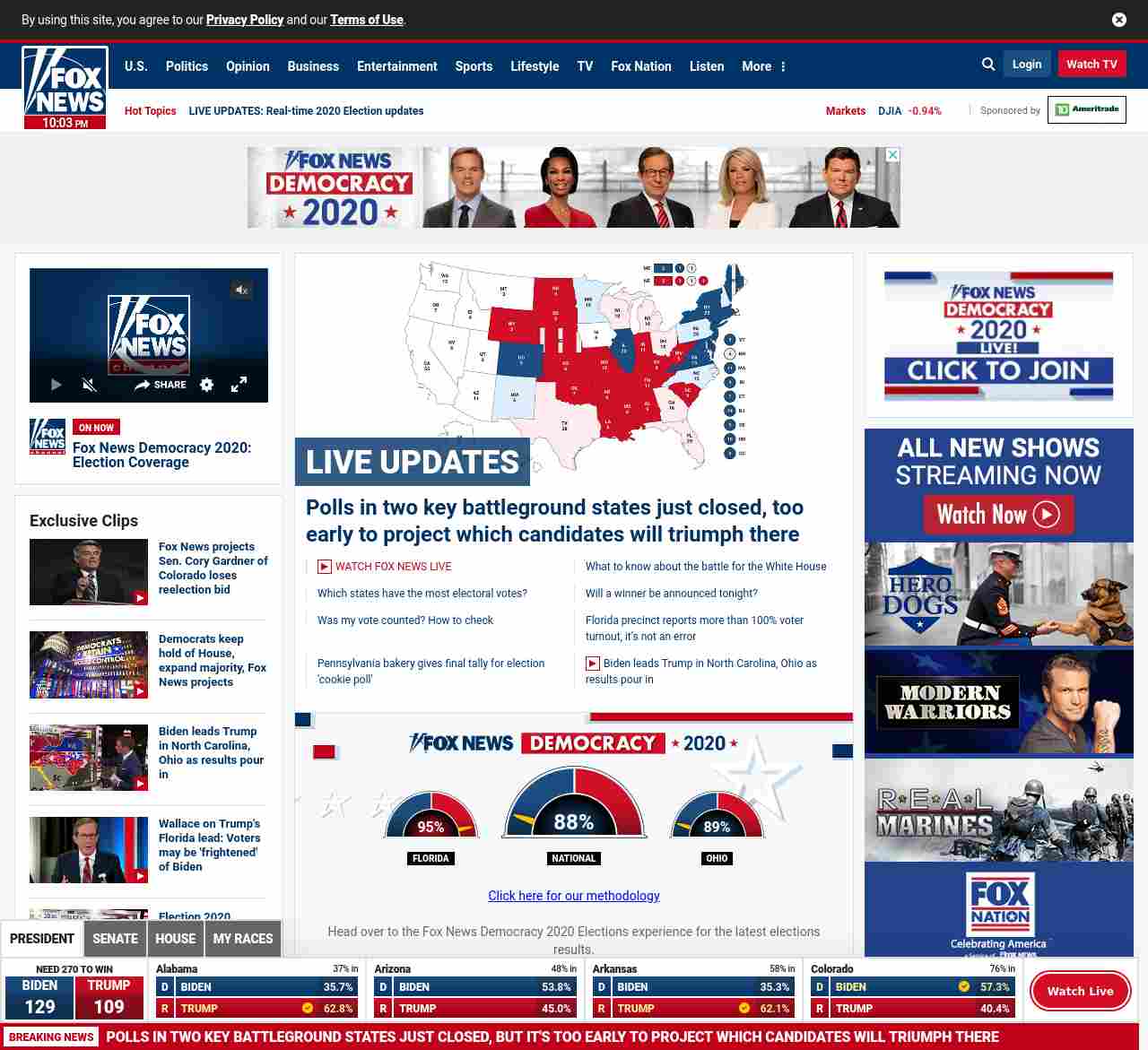 =”https://www.foxnews.com/elections/2020/general-results“>Polls in two key battleground states just closed, too early to project which candidates will triumph there