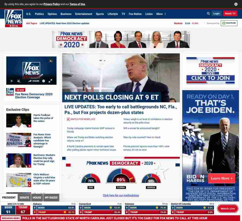 =”https://www.foxnews.com/elections/2020/general-results/live-updates“>LIVE UPDATES: Too early to call battlegrounds NC, Fla., Pa., but Fox projects dozen-plus states