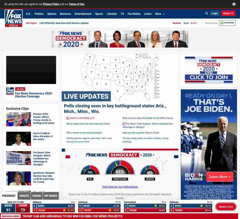 FN: [[NEXT POLLS CLOSING AT 9 ET]] LIVE UPDATES: Too early to call battlegrounds NC, Fla., Pa., but Fox projects dozen-plus states</a ((lubuntu at wor1))