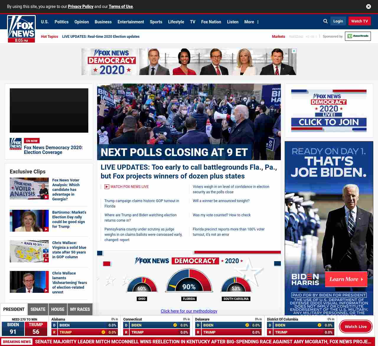 =”https://www.foxnews.com/elections/2020/general-results/live-updates“>LIVE UPDATES: Too early to call battlegrounds Fla., Pa., but Fox projects winners of dozen plus states