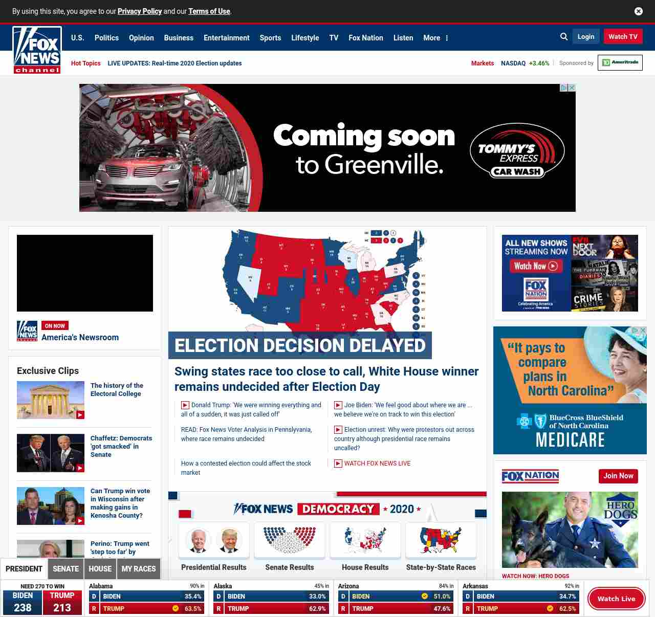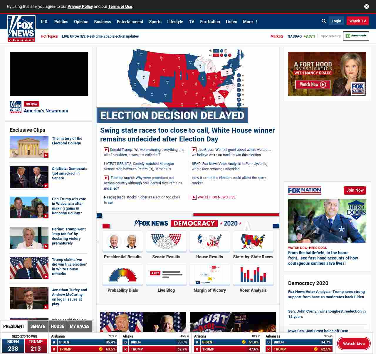 FN: [[ELECTION DECISION DELAYED]] Swing states race too close to call, White House winner remains undecided after Election Day</a ((lubuntu at wor1))