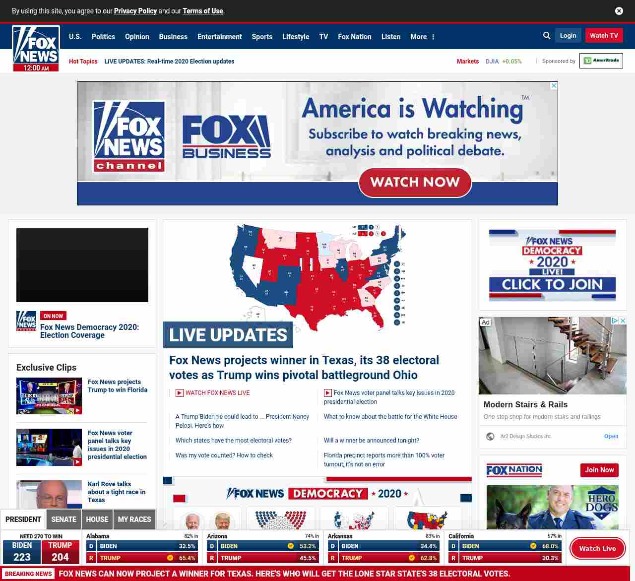 =”https://www.foxnews.com/elections/2020/general-results“>Fox News projects winner in Texas, its 38 electoral votes as Trump wins pivotal battleground Ohio