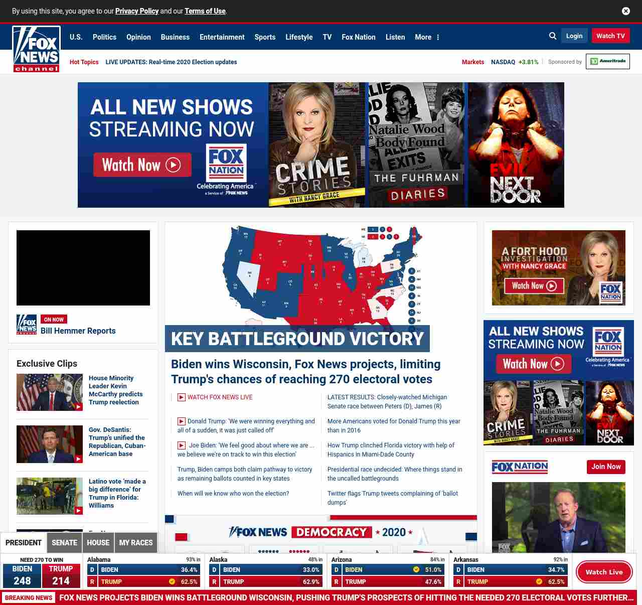 =”https://www.foxnews.com/elections/2020/general-results“>Biden wins Wisconsin, Fox News projects, limiting Trump’s chances of reaching 270 electoral votes