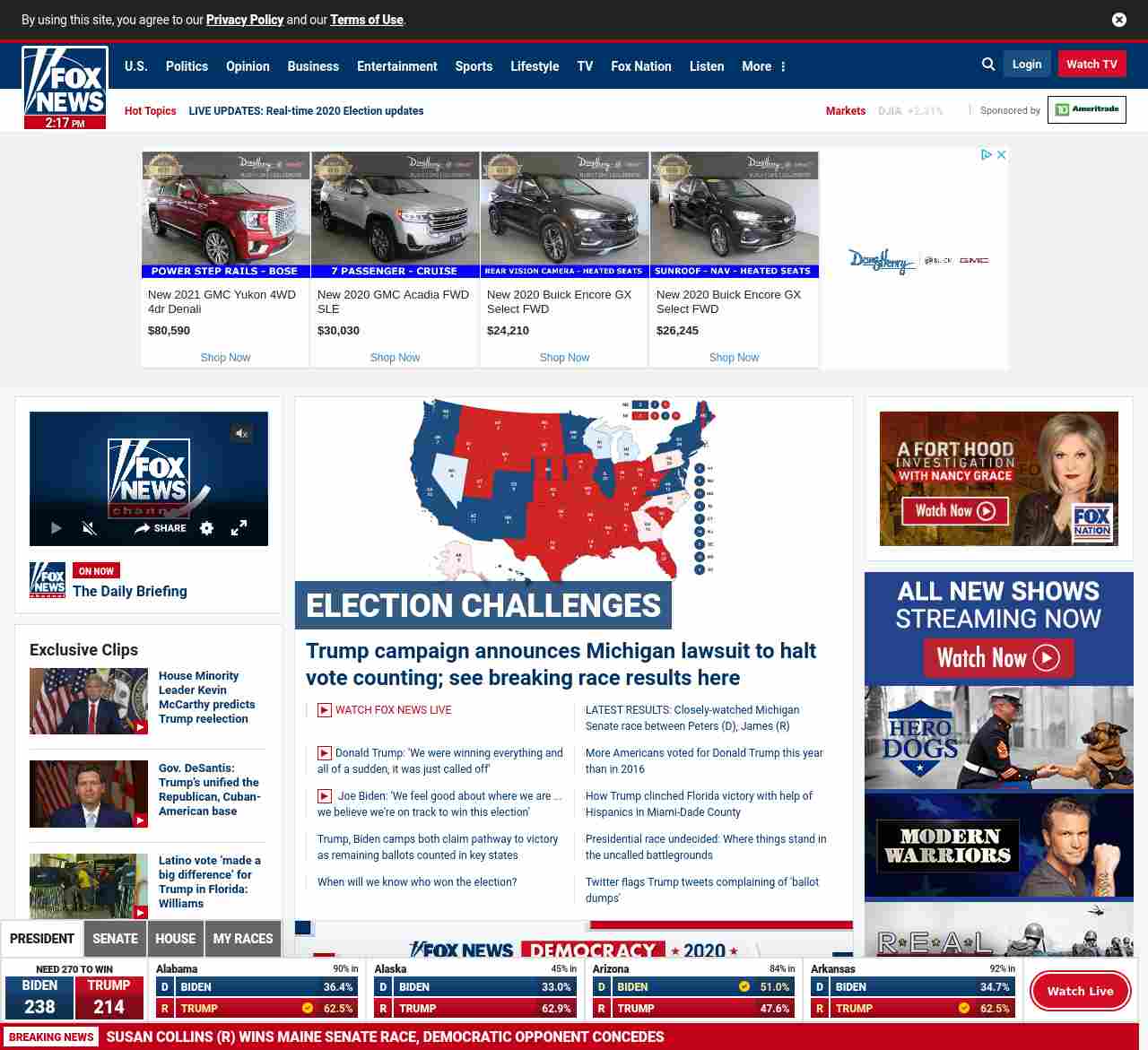 =”https://www.foxnews.com/elections/2020/general-results“>Trump campaign announces Michigan lawsuit to halt vote counting; see breaking race results here
