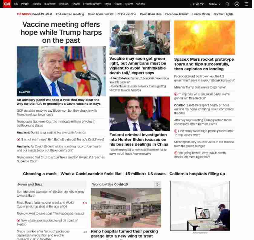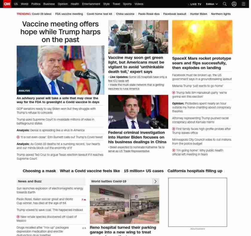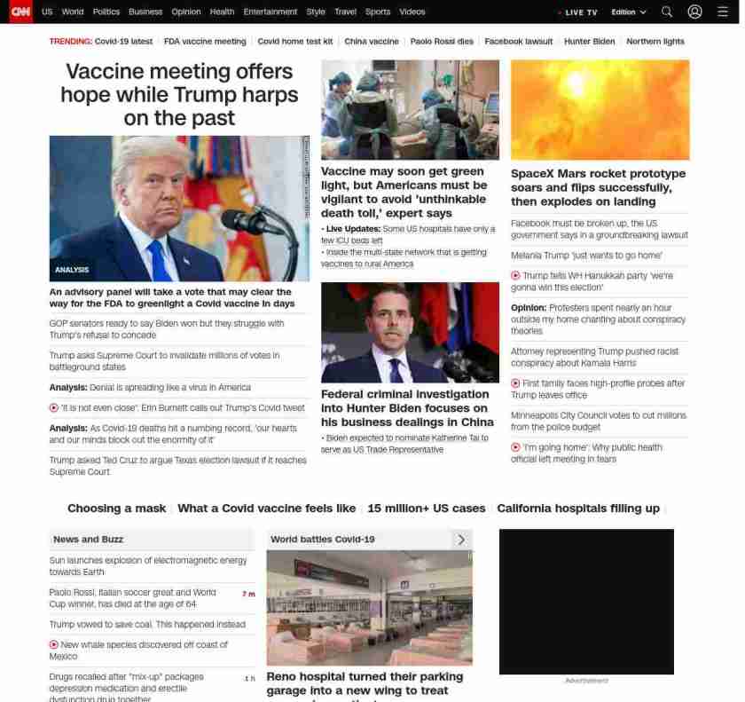 || Vaccine meeting offers hope while Trump harps on the past ||”},”chartbeat”:{“sections”:””},”branding_content_page”:”default”,”branding_content_zone”:[“default”],”branding_content_container”:[“default”,”cnn-money-markets”,”space-and-science”,”cnn-heroes-hp”],”branding_content_card”:[“”]} , edition: “domestic” , sourceId: ”