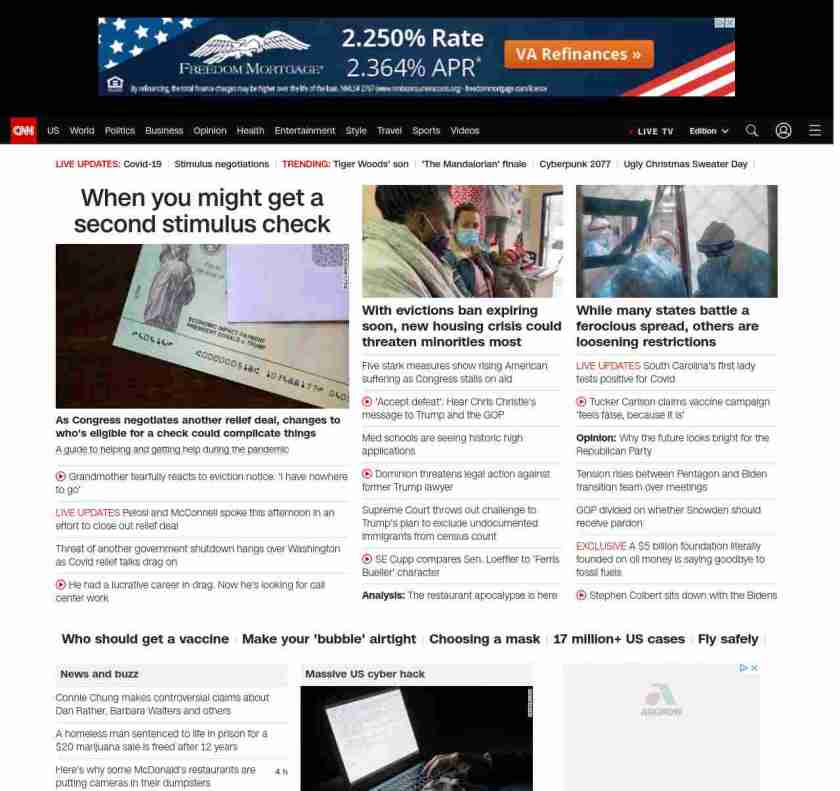 CNN1: FOXVCNN=|When you might get a second stimulus check| ((lubuntu at wor1 38Z1))