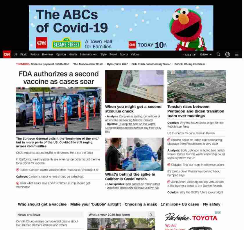 || FDA authorizes a second vaccine as cases soar ||”},”chartbeat”:{“sections”:””},”branding_content_page”:”default”,”branding_content_zone”:[“default”],”branding_content_container”:[“default”,”cnn-money-markets”,”space-and-science”,”cnn-heroes-hp”],”branding_content_card”:[“”]} , edition: “domestic” , sourceId: ”