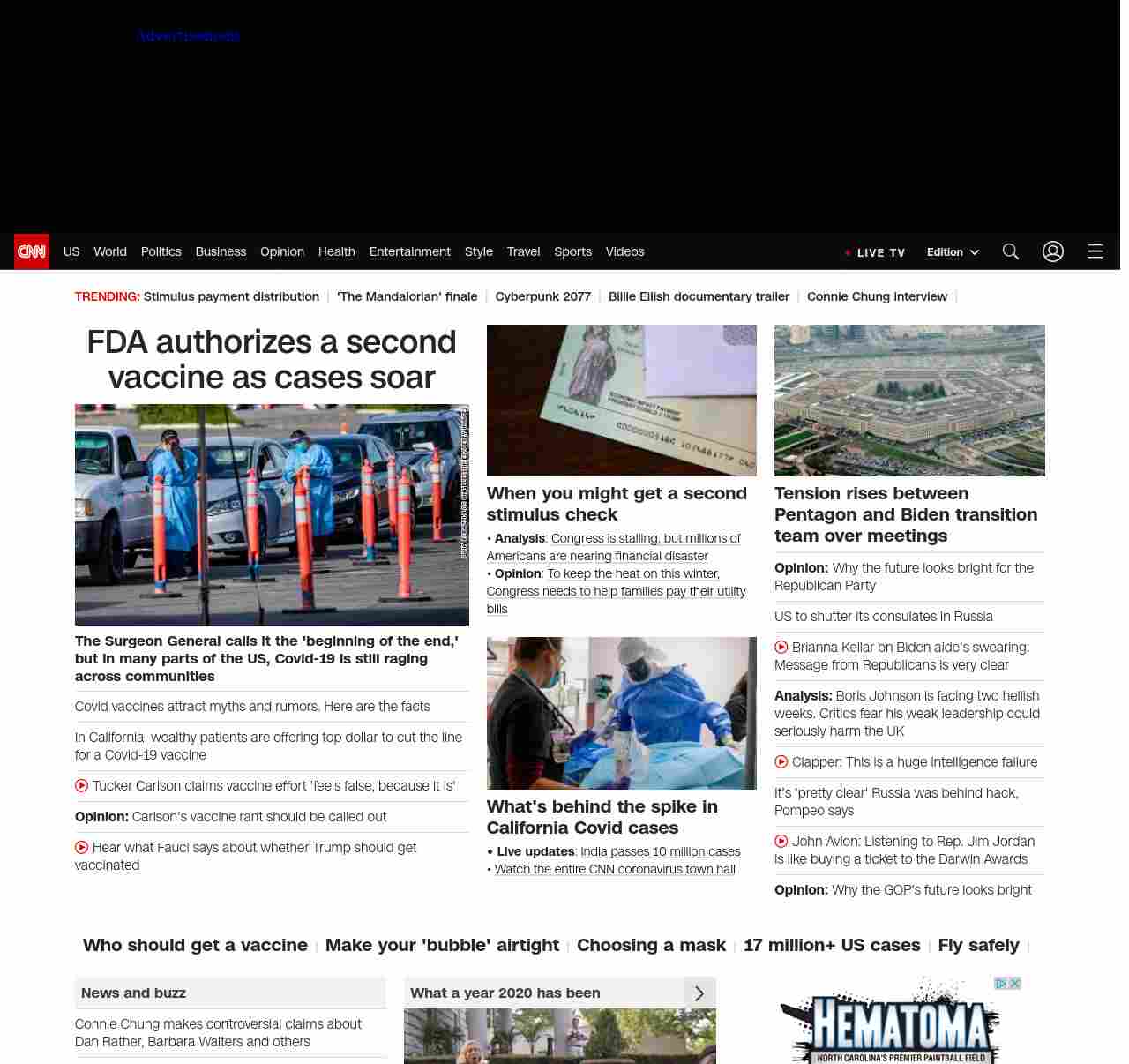 || FDA authorizes a second vaccine as cases soar ||”},”chartbeat”:{“sections”:””},”branding_content_page”:”default”,”branding_content_zone”:[“default”],”branding_content_container”:[“default”,”cnn-money-markets”,”space-and-science”,”cnn-heroes-hp”],”branding_content_card”:[“”]} , edition: “domestic” , sourceId: ”
