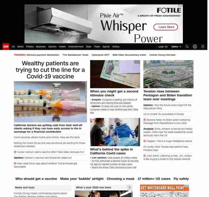 CNN1: FOXVCNN=|Wealthy patients are trying to cut the line for a Covid-19 vaccine| ((lubuntu at wor1 38Z1))