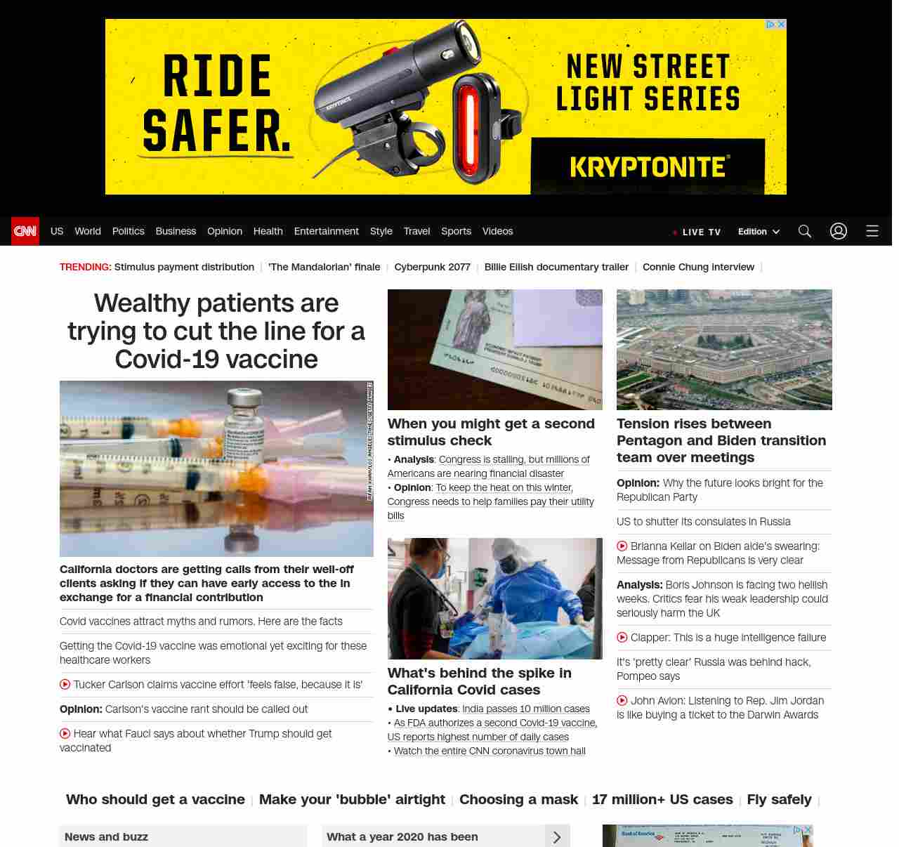 CNN1: FOXVCNN=|Wealthy patients are trying to cut the line for a Covid-19 vaccine| ((lubuntu at wor1 38Z1))