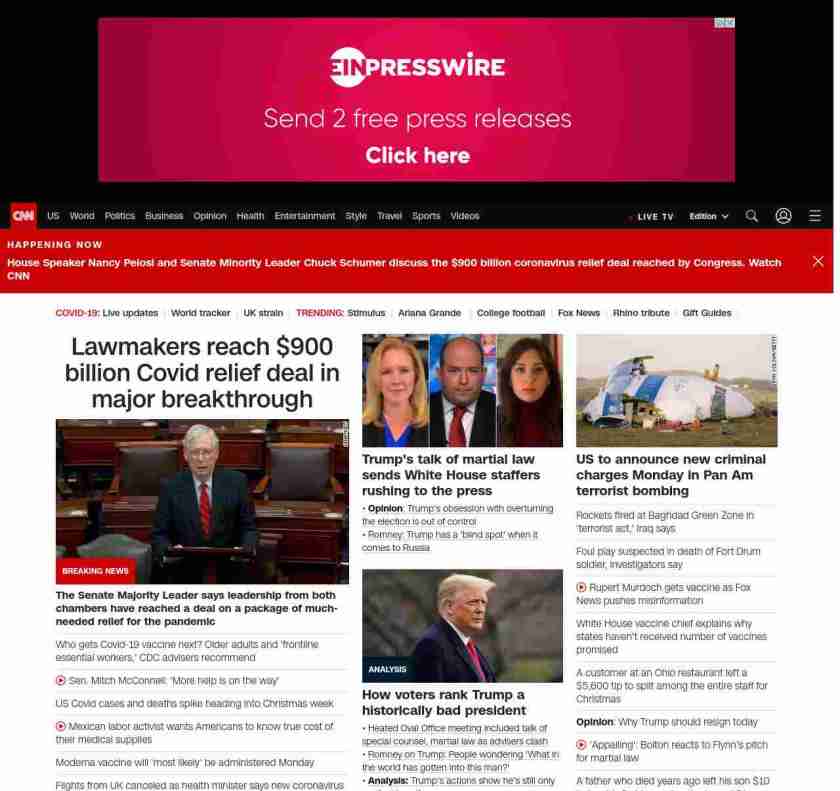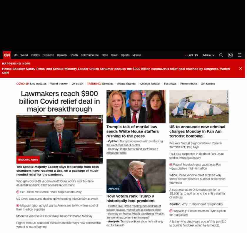CNN1: FOXVCNN=|Lawmakers reach $900 billion Covid relief deal in major breakthrough| ((lubuntu at wor1 38Z1))
