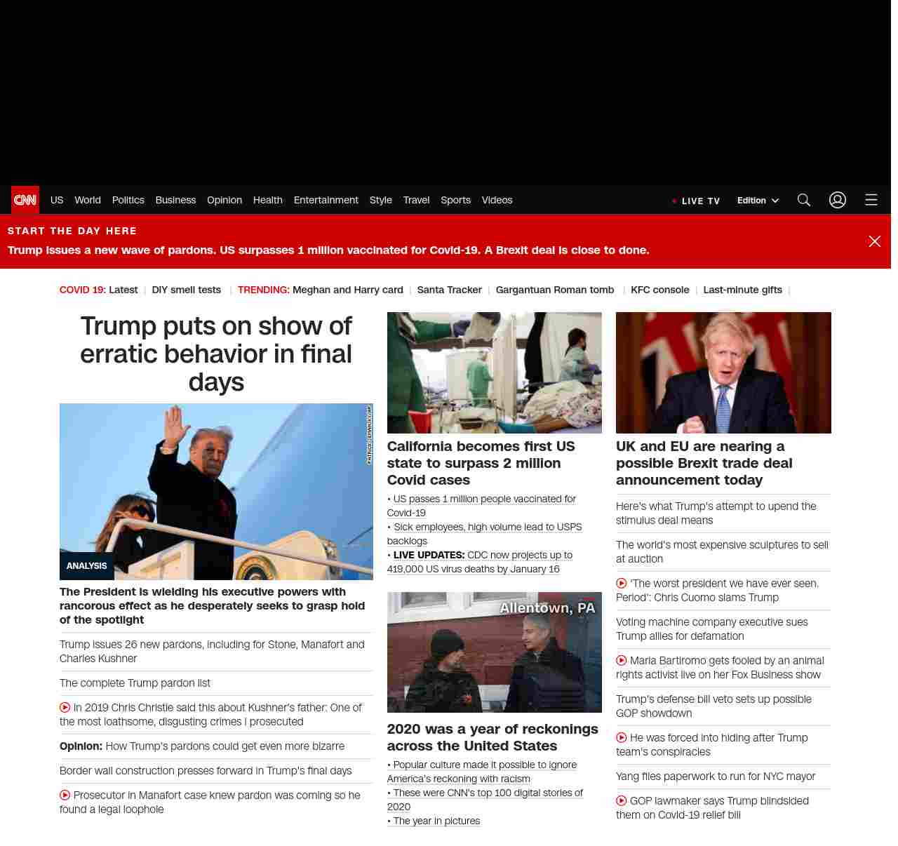|| Trump puts on show of erratic behavior in final days ||”},”chartbeat”:{“sections”:””},”branding_content_page”:”default”,”branding_content_zone”:[“default”],”branding_content_container”:[“default”,”cnn-money-markets”,”space-and-science”,”cnn-heroes-hp”],”branding_content_card”:[“”]} , edition: “domestic” , sourceId: ”