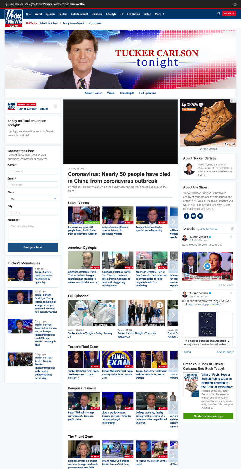 TC: Coronavirus: Nearly 50 people have died in China from coronavirus outbreak ((tuckercarlson_____)) ((lubuntu at wor1))