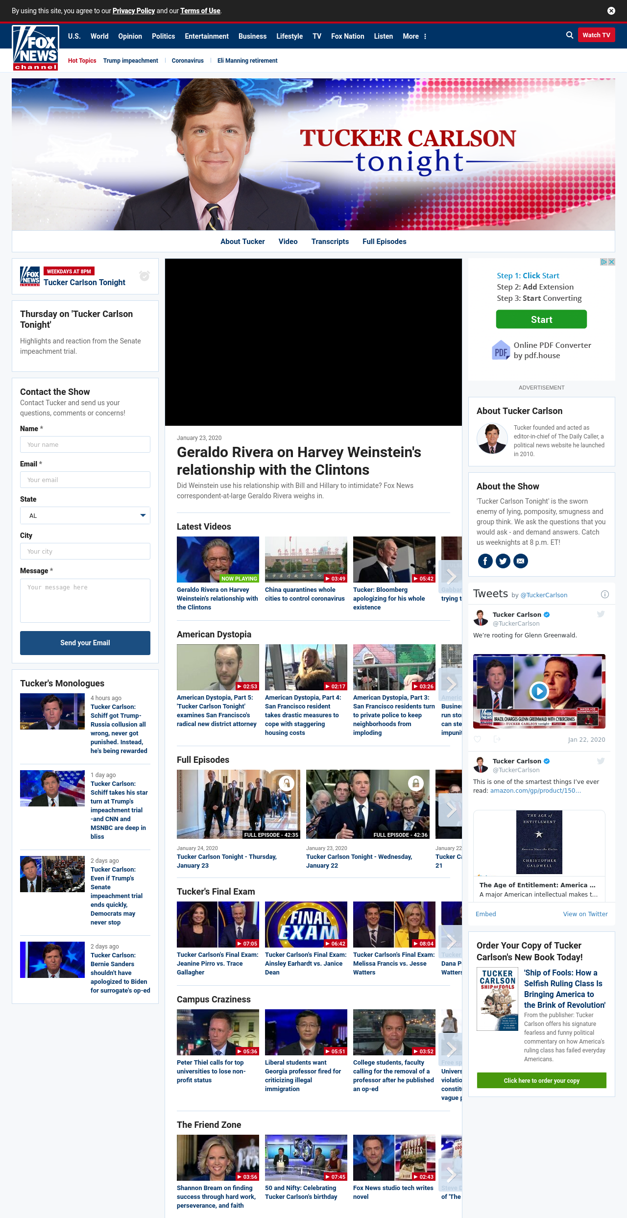TC: Geraldo Rivera on Harvey Weinstein’s relationship with the Clintons ((tuckercarlson_____)) ((lubuntu at wor1))